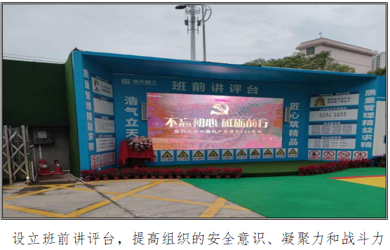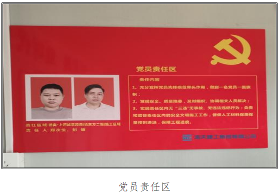 5、项目部自成立之初,便致力于打造区域品质标杆项目,进一步提升企业市场美誉度和影响力。项目以争创年度质量、安全标准化季度考评优良项目为目标,坚持党建引领,把加强党的领导与完善项目治理统一起来,把党建工作融入项目建设的各个环节,设立党员责任区、党员先锋队、党员先锋岗,充分发挥党员先锋模范作用和党支部战斗堡垒作用,助力建造精品工程。