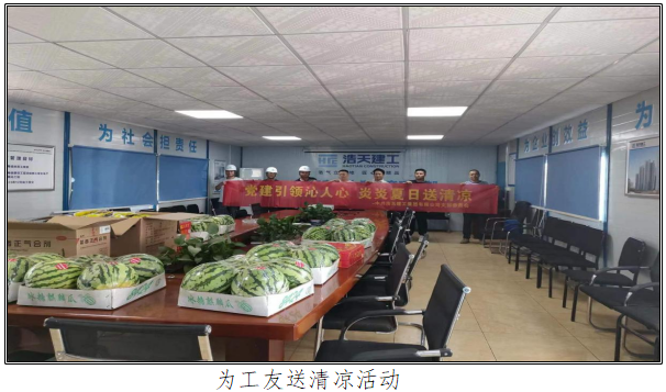 3、形式多样地落实基层党建工作,增强党的凝聚力。项目党支部通过夏送清凉、体检等活动,促进与工友之间的融合,真正做到与人民群众融为一体,站在工友的角度思考问题,帮助工友解决实际问题,这样才能促进项目部与广大工友的合理健康发展,也进一步践行了理论联系实际的党的原则。