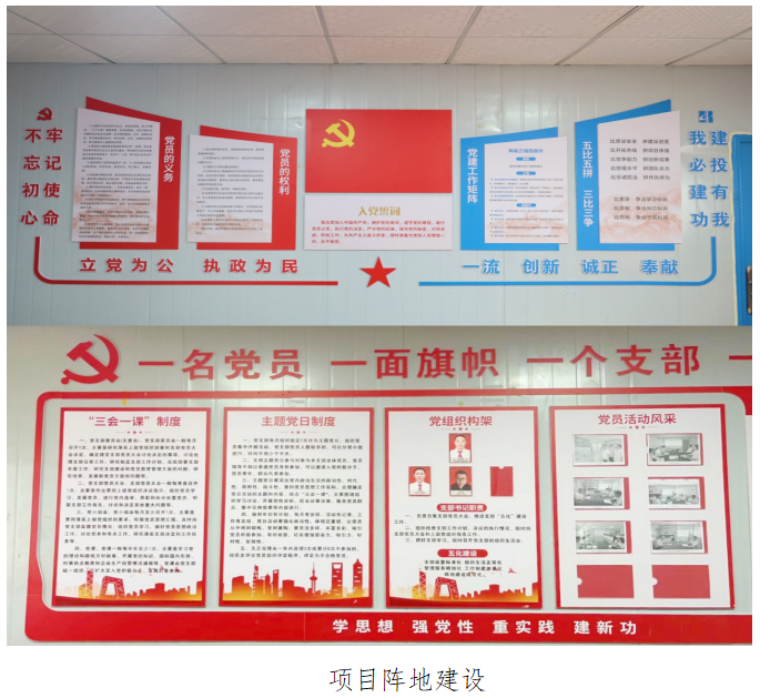 自项目支部成立以来,坚持以习近平新时代中国特色社会主义思想为指导,以“塑造党建窗口,建造精品工程”为宗旨,持续强化组织领导、规范管理机制,结合项目部工作实际,制定了《福瑞项目党支部党建工作计划》《党员先锋行方案》《“党建进工地、支部建在项目上”标杆创建活动方案》等,并明确党支部书记为标杆创建活动负责人,压实责任分工,切实夯实一线“红色堡垒”。