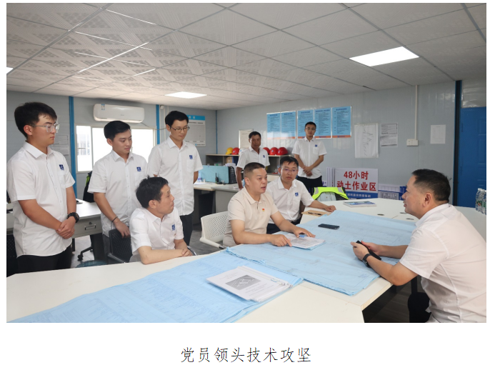 “哪里有急难险重任务,哪里就有项目党员突击队”,支部聚焦旗帜引领,在项目部设置“一岗一队一区”,充分发挥党员示范带头作用,持续提高党员在各项工作中的影响力和凝聚力。同时,根据项目团队中青年员工占比达62.5%的特点,运用“党-工-团”三维联动模式,积极开展了“党建带团建 青年话创新”青年职工座谈、友谊篮球赛等,不断激活项目“年轻力量”。